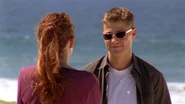 Back at the Cohen's house, the odd dinner party continues. One of the homeless men finds his dog in Kaitlin's lap, much to the youngest Cooper's chagrin. The doorbell rings and Sandy opens the door to a teary Julie who apologizes. She is invited to join the meal, but instead she and Ryan head out to the poolhouse to talk alone. Julie asks Ryan to "tell me about her". He begins by sharing his memory of the first time he ever saw Marissa. Talking about her smile, they share memories of Marissa.