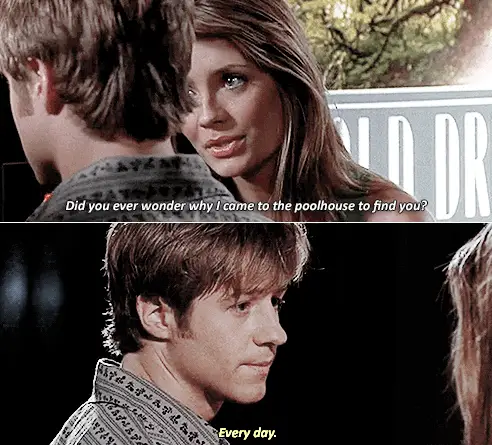 Back with Marissa and Ryan, they are trying to figure out what to eat at a vending machine while Marissa gives Ryan the cold shoulder. Ryan asks if she is ever going to stop being mad at him and Marissa asks why she should be mad at him. Ryan says its because she walked in on him and Gabrielle. Marissa says she doesn't care about it when Ryan tells her he was only with someone else because she was clearly back together with Luke. Marissa says she wasn't back together with Luke but she is now. Marissa then asks him if he ever wondered why she came looking for Ryan and he tells her he wonders everyday. Ryan offers her a chance to finally tell him why and she changes the subject.